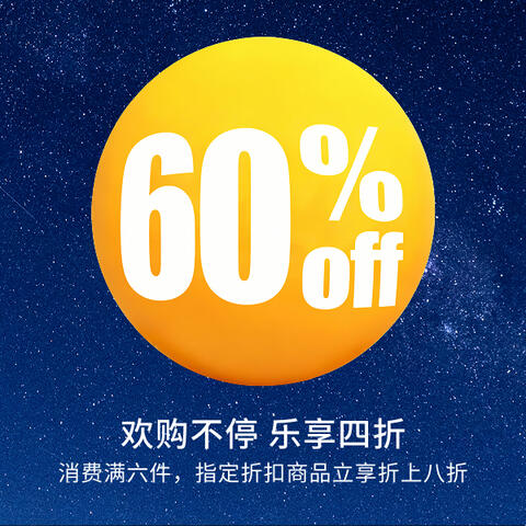 欢购不停 乐享四折|消费满六件指定折扣商品立享折上八折,更有额外甄选热门商品低至三折*,即刻选购!