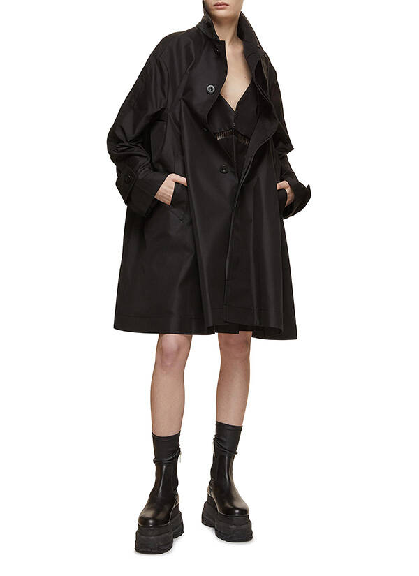 除了热门米色系,不妨偶尔尝试用经典的黑色风衣轻松提升整体气质,无缝地将服装从白天的精致到晚上的诱惑。穿以商务白色衬衫搭配配派对风裙装和齐膝靴,精致与俏皮的切换,尽在一瞬间。