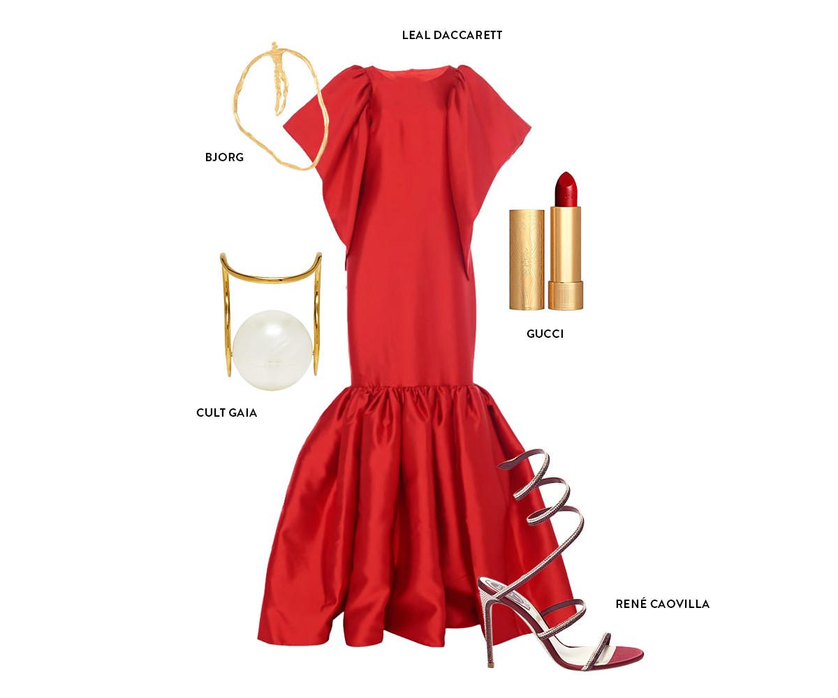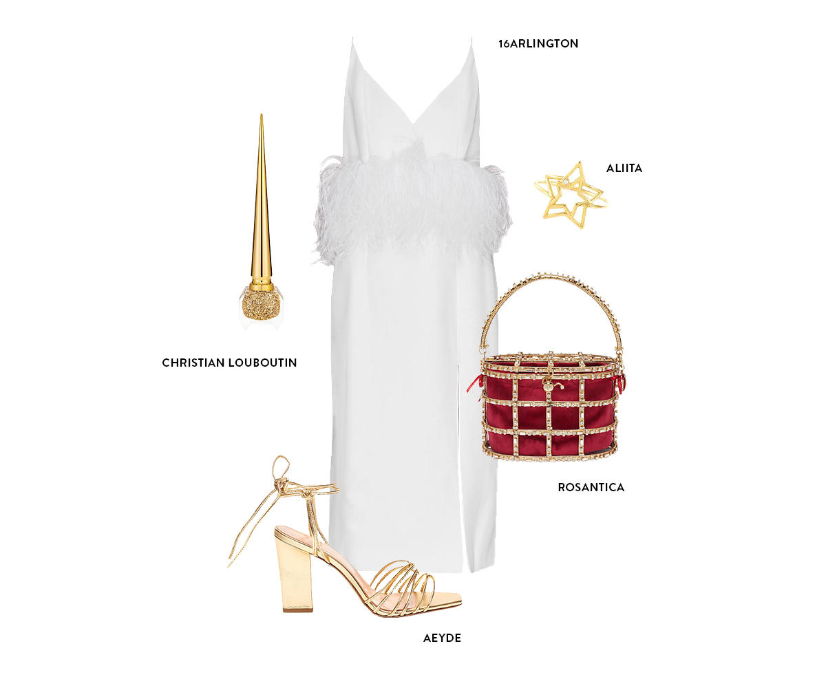五种派对,五个造型 节日场合穿搭 撰文:Bridget Barnett 1. 午餐 融合时尚色彩,再加上一抹印花 + Dries Van Noten Dontisy花卉图案高领缎面连衣裙 立即选购 + Delvaux Brillant Mini S Rodéo小牛皮手提包 立即选购 + Bottega Veneta ALMOND小马毛高跟鞋 立即选购 + J. HARDYMENT Silver Pearl珍珠造型吊坠黄铜圆环耳环 立即选购 阅读更多 2. 下班后小酌 亮眼配饰点缀醒目飒爽的套装,给人留下深刻印象 + Theory Classic初剪羊毛修身西服外套 立即选购 + Theory 初剪羊毛修身锥形裤 立即选购 + BOYY KARL 19迷你搭扣真皮手提包 立即选购 + Pierre Hardy Jerry拼色设计镂空绒面真皮高跟鞋 立即选购 3. 鸡尾酒晚宴 有趣的质地搭配丰富的金色装饰,彰显个性 + 16ARLINGTON 鸵鸟毛点缀开衩吊带连衣裙 立即选购 + Rosantica Vestale仿水晶金属篮型手提包 立即选购 + aeyde Daisy绕踝绊带真皮搭带粗跟凉鞋 立即选购 4. 家庭派对 全黑装束搭配点睛的相搭配饰,酷感十足 + ZAID AFFAS 高领混马海毛针织衫 立即选购 + KIMHĒKIM CIGARETTE侧开衩裤脚口皮革长裤 立即选购 + BY FAR Magnolia搭带闪粉真皮高跟凉鞋 立即选购 + Shiseido 墨彩极色眼线液笔(01号-SHIBUI BLACK) 立即选购 + alexander wang Attica迷你缎面拉链腰包 立即选购 5. 隆重场合 利落的剪裁和醒目色系的搭配令人过目不忘 + Leal Daccarett Palermo喇叭袖露背鱼尾礼服裙 立即选购 + Cult Gaia PEARL几何手柄球型手提包 立即选购 + René Caovilla Cleo仿水晶绕踝绊带缎面高跟凉鞋 立即选购 选购热门派对单品 2019-12-04 00:03:00.0