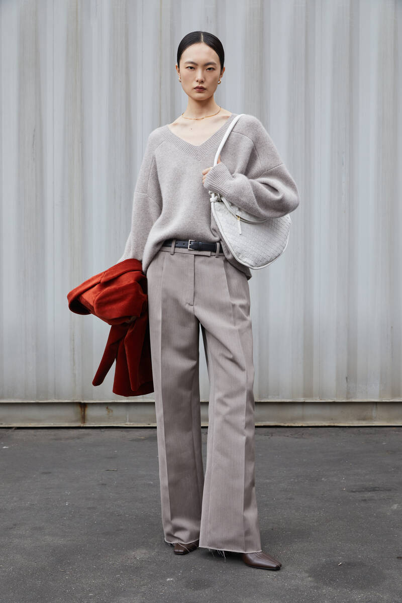 当然,你不必非得选择红色的单品。或许只需要加入一点红色的小细节,就能以一种更低调的方式打造出活力四溢的春节造型。一套来自 Barrie x Sofia Coppola 系列的黑色毛衣和 Theory 的长裤,以 Jacquemeus 的 Le Bambino手提包这样的精致红色配饰为佐,最后别忘了配上一双带有微妙红色点缀的 Alexander Mcqueen 的运动鞋。