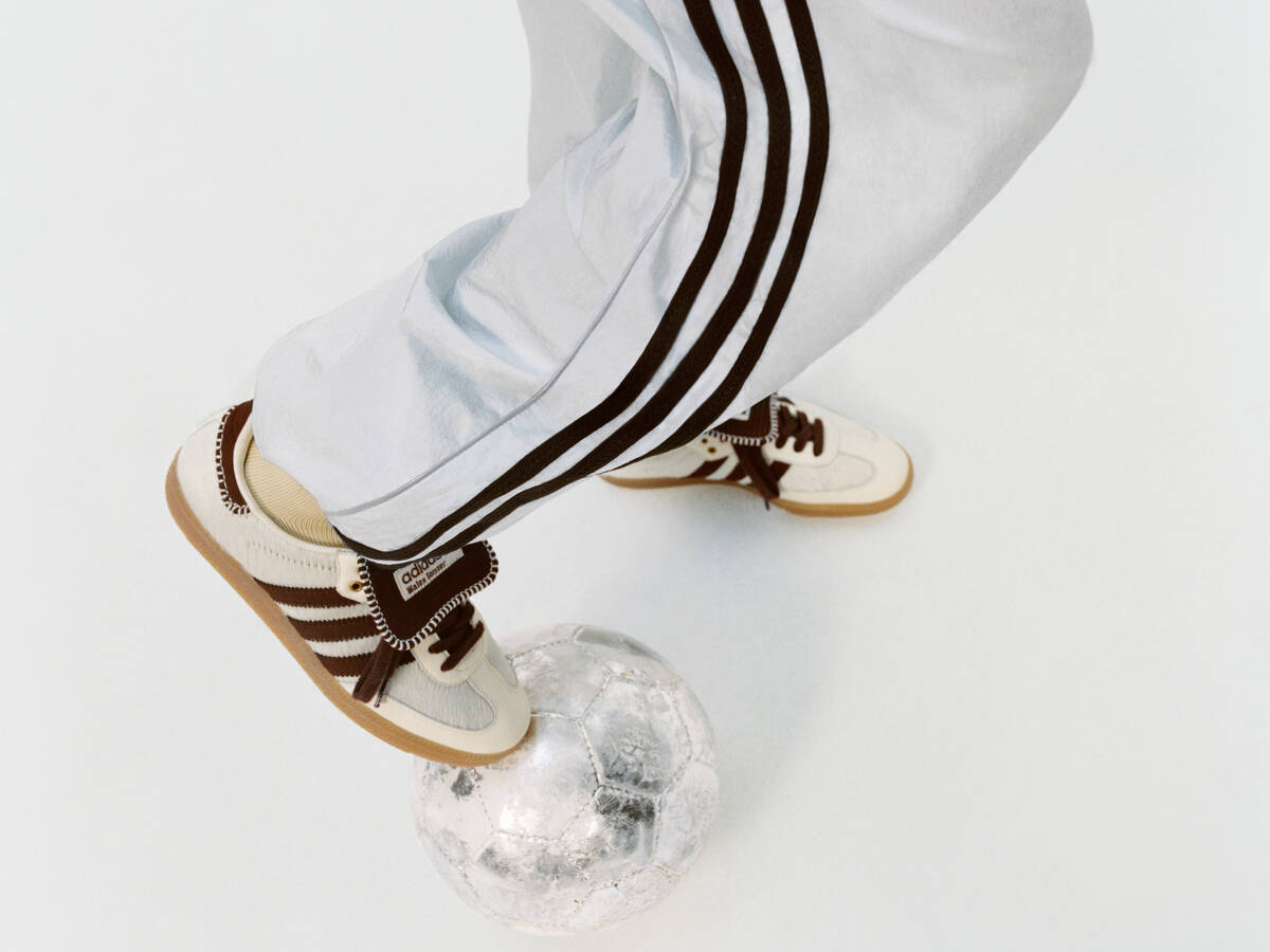 最新联名 Adidas x Wales Bonner 图片由 Adidas 提供 神奇的是,这款与 Wales Bonner 合作的 adidas Samba 运动鞋仅用皮革纹理和色彩设计,就让人瞬间被加勒比地区的梦幻韵味冲击,热带雨林、碧海蓝天、充满野性的动植物……条纹、放大的鞋舌边缘和后跟徽章上都有缝线细节,略带纹理的橡胶中底呼应复古 OGs 鞋款,最后,黄铜色环贯穿每个鞋眼,为设计画上了圆满的句号。