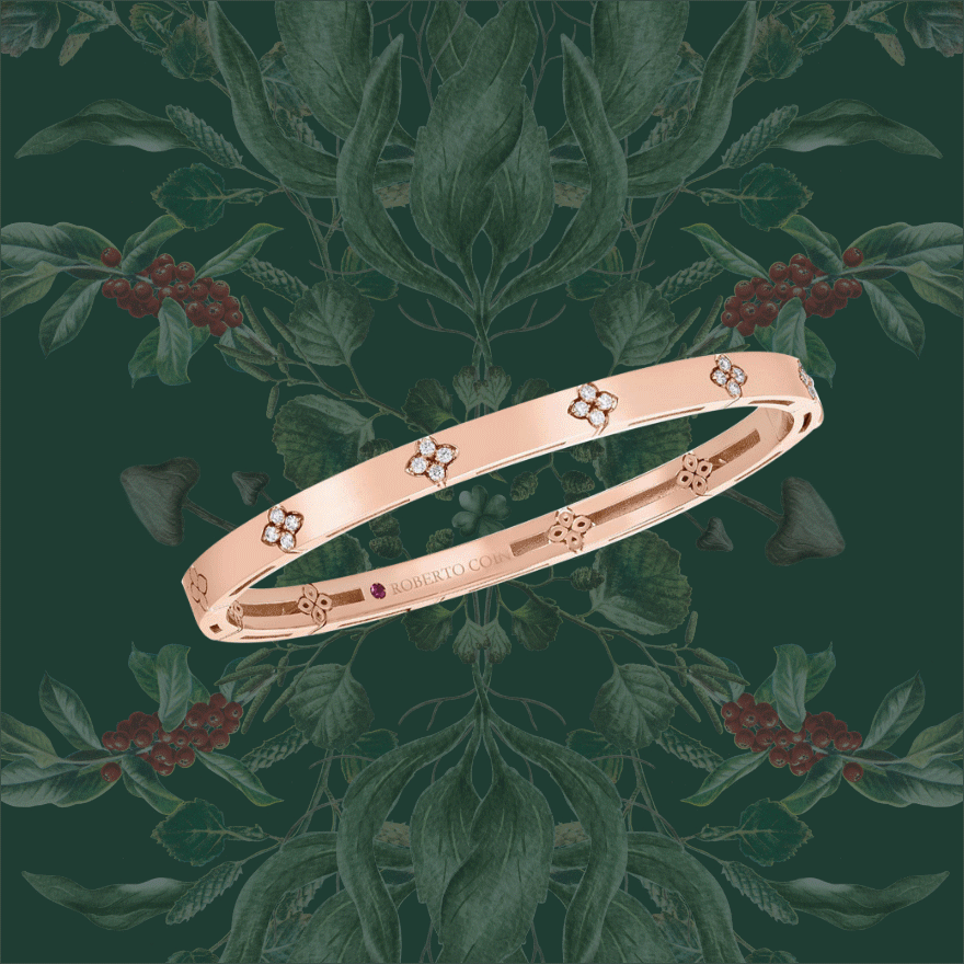 选择这款漂亮的 Roberto Coin 玫瑰金手镯,以闪亮耀眼的细节收服爱人的心。