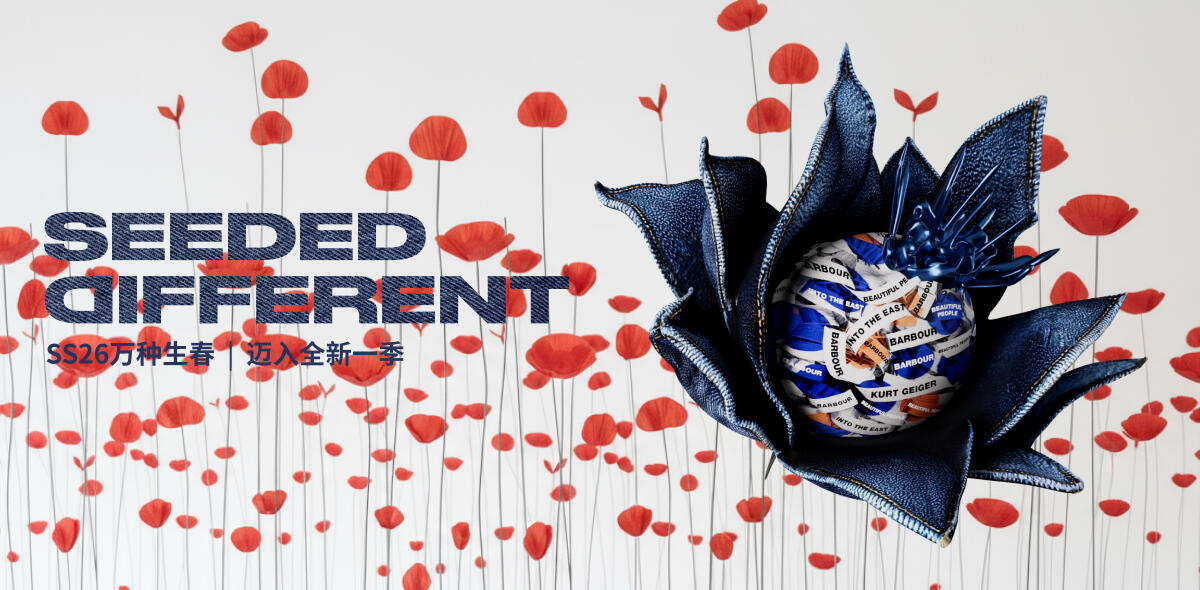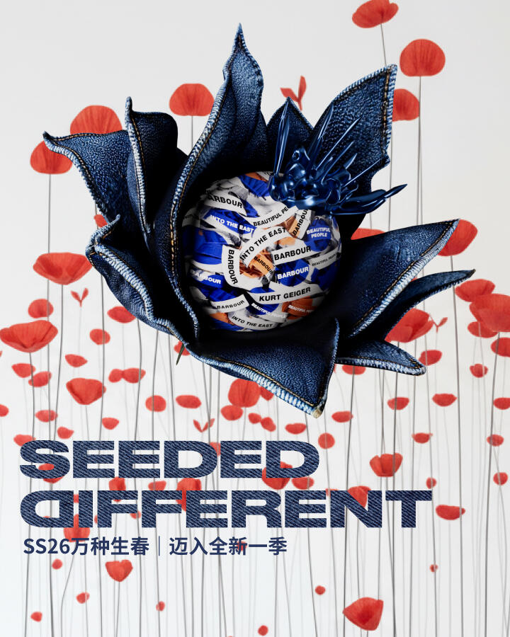 2026年,我们将在每处细节中,编织一则关于花的故事。Kurt Geiger、Beautiful People、Barbour 与 Into The East 的精选系列,将以各自的语调,同绘一座灵感花园。色彩与设计交融合韵,创意与气韵共生共长。