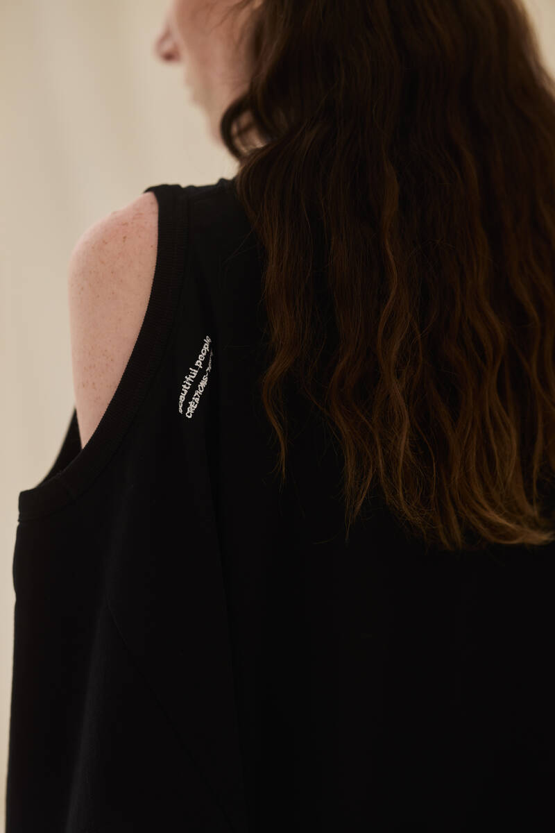 这次的 Saorsa 系列灵感源自 1970 年代,尤其是那时对社会规范的热烈反叛。作为设计师,我深受那个时代革新思想和追求自由精神的触动。我将这种感悟融入轻盈流畅的廓形,展现出一种轻松和流动感。颜色方面,我们以标志性的黑色和米白色为主,搭配米色和鼠尾草色等中性色调,这些灵感均来自大自然,成为这个系列的基石。