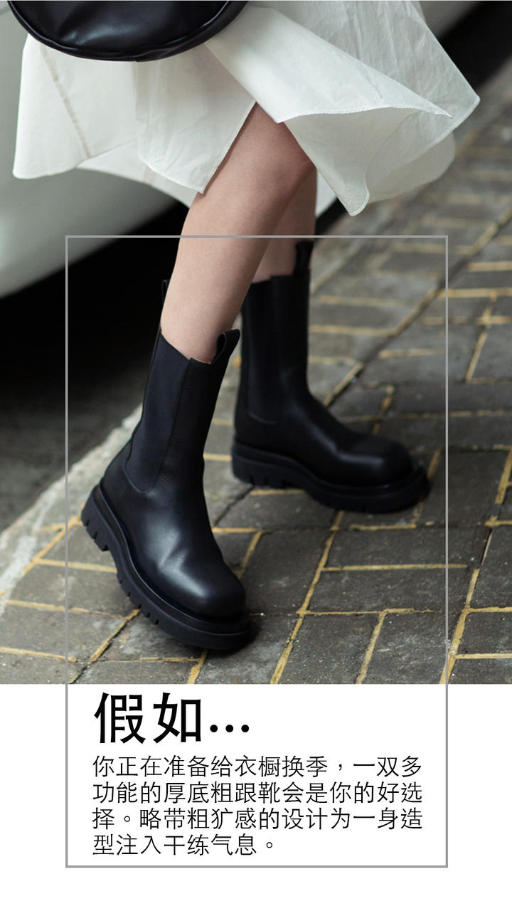 随心而搭 本季的造型重点是比例。在此,我们为你准备好以下的搭配建议 迎接过渡季。 + BOTTEGA VENETA LUG真皮厚底中筒靴 立即选购 + PHILIPPE AUDIBERT GIBSON 24K镀金黄铜耳环 立即选购 + ACNE STUDIOS NEW MERLYN腰带小羊皮夹克 立即选购 + MAISON MICHEL NEW ABBY编织帽带羊毛短檐帽 立即选购 探索寒潮风尚精选