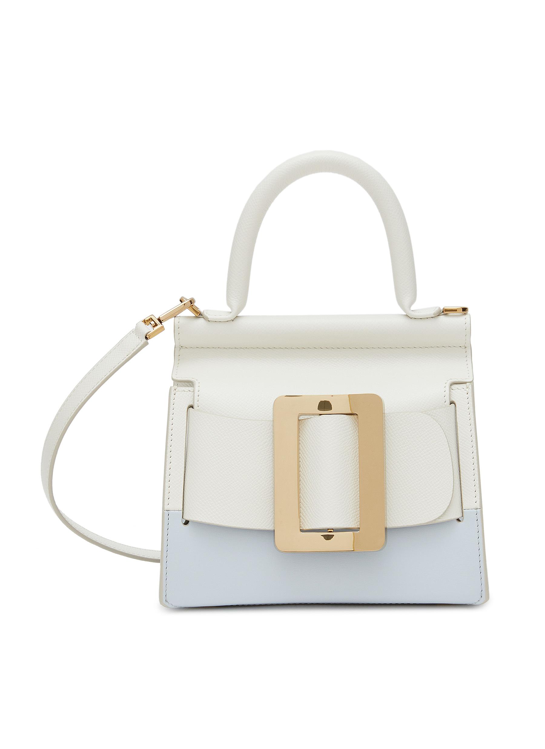 这款白色粒面皮革托特包廓形紧凑,功能实用,但不乏时尚风格,充满趣味。超大搭扣肩带与浅蓝色色块充满活力,可提升各种单色穿搭的格调。若追求实用功能,这款托特包的可调节肩带也能够解放你的双手。