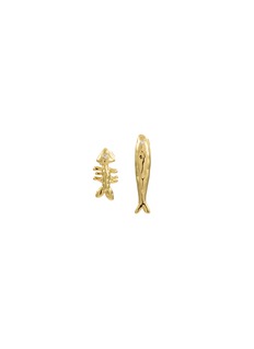 Dive into the depths of style with Eliou's earrings. These intriguing earrings feature a sleek, elongated fish design, beautifully crafted in gleaming gold plating. Perfect for adding a whimsical yet elegant touch to any look, these earrings are sure to catch the eye and spark conversations. Ideal for the fashion-forward individual with a love for distinctive, nature-inspired accessories.