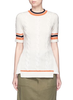 3.1菲利林这款针织衫的面料混合了羊毛、牦牛毛及羊绒,拥有柔软舒适的手感,正面采用斯文简单的款式,背面却颇有新意,以双层面料打造半露背效果,增添摩登性感魅力。袖子及领部以深蓝拼橙色条纹注入运动年轻活力,展现您不拘一格的时尚品位。