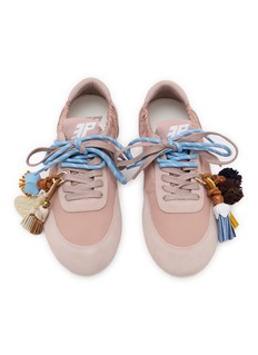 3P's Charms Ballet sneakers showcase Italian artisanship through gathered detailing and playful handcrafted charm embellishments. The flexible slip-on silhouette features multicolored woven laces and whimsical tassel accents for distinctive bohemian flair. A characterful sneaker that celebrates traditional craftsmanship with eclectic, personalized touches for effortless individuality.