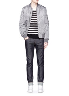 来自美国的3x1以牛仔裤起家,秉承创意哲学打造出拥有最佳品质和合身度的牛仔裤。这款没有经过水洗处理,呈现出深邃的牛仔蓝色调,裤腿微收窄的剪裁修饰出完美的腿线,简约设计中透出酷感,让您舒适打造高级街头风尚。
