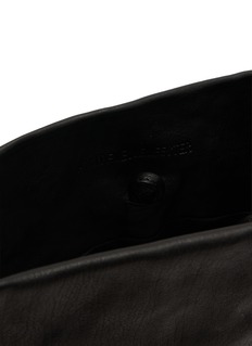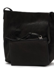 Step out in style with Ann Demeulemeester's minimalist black leather tote. This expertly crafted bag offers a sleek, understated design with a soft, textured leather finish and a slender, adjustable strap for comfortable shoulder wear. Its spacious interior makes it an ideal choice for day-to-day essentials, blending functionality with a timeless aesthetic.