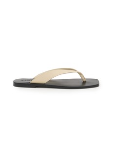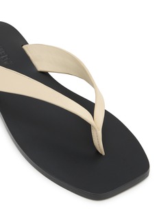 Step into summer with style in these Kinto sandals. Featuring a classic black leather sole contrasted with elegant leather straps, these flip-flops are designed for both comfort and chic appeal, perfect for those who appreciate a minimalist aesthetic without sacrificing functionality.