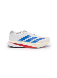 Adidas presents high-performance running sneakers with signature three-stripe branding and engineered mesh construction for superior breathability. The lightweight silhouette with responsive cushioned midsole and lace-up closure delivers dynamic athletic support, while contrast detailing and streamlined racing design create a technical essential for serious training and everyday active lifestyles.