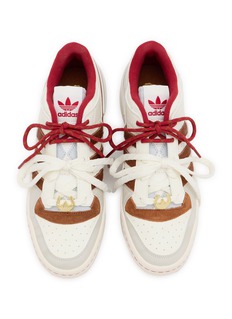 Experience the fusion of classic charm and contemporary flair with these Adidas sneakers. Crafted from premium leather with suede accents in a sophisticated palette of cream and rich mahogany, these shoes promise both comfort and style. The design is punctuated by a subtle red stripe and complementing laces, enhancing its visual appeal.