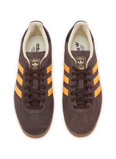 Step up your style with adidas Gazelle sneakers in a classic brown shade. These iconic shoes blend heritage and modern appeal, featuring a streamlined profile with the signature triple stripes in a contrasting gold tone. Crafted from soft suede, these sneakers offer both comfort and durability, perfect for daily wear. The rubber outsole provides excellent traction, making them suitable for a variety of settings.