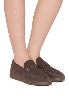 Adidas presents contemporary penny loafers with signature three-stripe detailing and soft napped finish for hybrid sportswear sophistication. The slip-on silhouette with tonal lateral stripes and textured rubber sole delivers unexpected athletic elegance, while streamlined construction and iconic trefoil hardware create a distinctive essential for boundary-pushing style enthusiasts and modern smart-casual dressing.