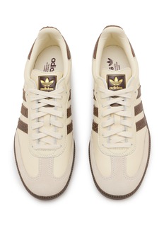 Elevate your casual wardrobe with the timeless elegance of adidas' Samba sneakers. These classic shoes are reimagined in a sophisticated cream and brown colour palette, blending vintage charm with contemporary style. Crafted from high-quality leather with suede overlays, the Samba ensures both durability and comfort. The iconic three stripes in a contrasting brown create a striking visual, while the gum rubber outsole provides excellent grip and an authentic finish.