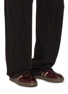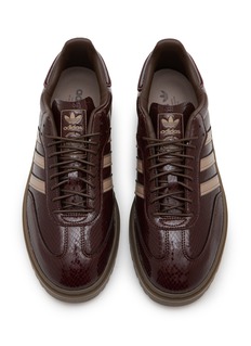 Infuse timeless elegance into your footwear collection with these adidas sneakers, presented in a deep burgundy shade enhanced by a polished patent finish. Classic stripes in tonal variations lend a subtle yet striking appeal, while the robust rubber sole ensures durability and stability. Perfect for adding a touch of sophistication to any outfit, these sneakers blend classic charm with contemporary comfort.