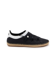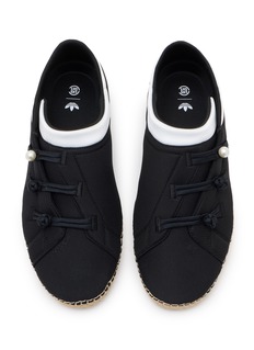 adidas and CLOT present the Qi Flow espadrille sneakers, where Edison Chen fuses Eastern-inspired design with athletic craft. The streamlined low-top features toggle lacing with signature pearl-effect hardware and a handwoven jute rope sole. This hybrid silhouette bridges streetwear innovation and Mediterranean tradition for effortless seasonal style.