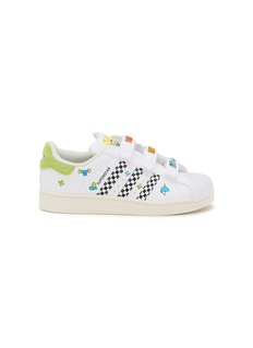 Inspired by the worlds dreamed up by Disney Pixar, this pair features your little ones' familiar friends. Featuring hook-and-loop straps, these shoes are easy for little hands to put on and kick off. The smooth synthetic leather upper, textile lining and rubber outsole keep kids comfortable whether they're climbing jungle gyms or chasing their friends around the park.