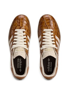 adidas 与 Wales Bonner 合再度合作,将传统与现代融合在一起,颂扬嘻哈运动和浪漫主义。此款 Samba 鞋玩转材质,鳄鱼纹理压花牛皮鞋面与手工编织皮革鞋舌形成鲜明对比。优质牛皮细化了三条纹标志,与装饰缝线相得益彰。鞋带环采用金色金属制成。