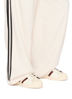 adidas 和 Wales Bonner 以嘻哈文化与浪漫主义为主题,将传统与现代元素巧妙融合。音乐与创意活力贯穿整个系列,通过单品的质感、廓形与色彩得以淋漓展现。Wales Bonner Superstar 鞋款以经典 adidas 轮廓为蓝本进行升级,将常规光面皮革鞋面替换为鳄鱼纹压花牛皮材质,同时延伸至鞋面及三条纹标识。