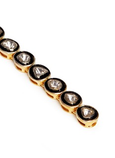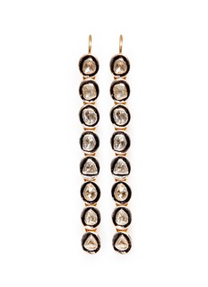 Mounted with a dangling string of faceted diamonds, these AISHWARYA earrings are elegant with a subtle raw-edge appeal. A perfect match for your ethnic-chic downtime sets, this pair is equally stunning when worn with your night-out attire.