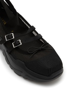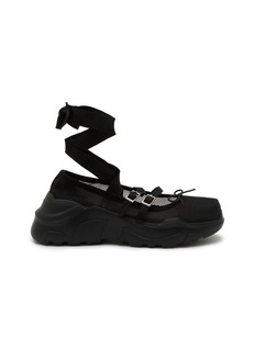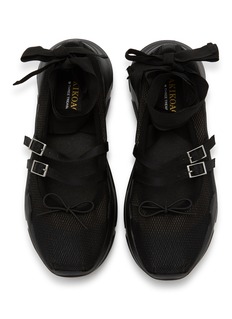 日本设计师 Akiko Aoki 以吸睛图案与解构廓形打造女装系列,为现代都市女性带来独特的东京街头风格。这款运动鞋以芭蕾舞鞋灵感融入廓形,线条流动中映射女性优雅与张力。