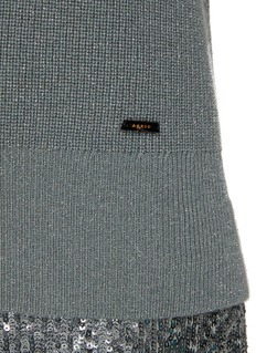 Akris 这款针织衫精选混羊绒打造,金属丝线配合蓝灰色调底色为单品注入灵动神秘气息,整体版型合身,轻松升级你的秋冬时尚造型。