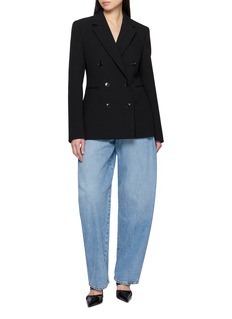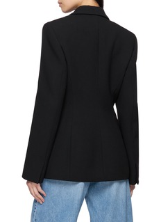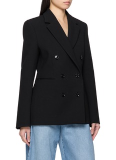 Alaïa 这款西装以质感黑调挺括面料打底,收腰剪裁精准勾勒身形线条,经典双排扣设计注入复古气场,适配职场通勤、轻社交等多场景。搭阔腿牛仔解锁松弛酷感,配同色裙装衬出优雅精致,是兼具干练与高级感的气质单品。
