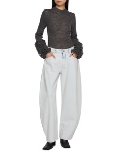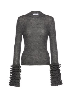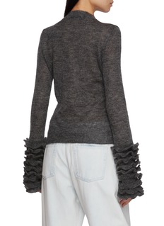 Alaïa 注重几何形状和线条的处理,以巧妙的轮廓剪裁来勾勒身体的曲线。这款针织衫借由利落的压褶工艺,在袖口处塑造富有韵律的几何线条,修身廓形勾勒曼妙身形。