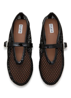 Step into elegance with these Alaïa loafers, beautifully crafted from black leather with a distinctive mesh overlay. The sleek design is accentuated by a polished silver-tone buckle, enhancing the sophisticated appeal. These shoes are perfect for adding a touch of refined style to any outfit, from tailored trousers to flowing skirts.