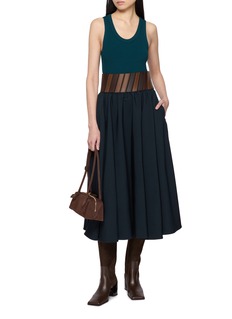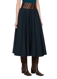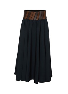 Alaïa 这款半裙用拼接腰带打破纯色裙装的单调,大摆剪裁平衡利落与柔美,既能搭配同风格内搭打造精致造型,也能混搭休闲单品解锁松弛风,是自带品牌辨识度的百搭单品。