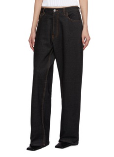 Alaïa 注重几何形状和线条的处理,以巧妙的轮廓剪裁来勾勒身体的曲线。这款牛仔裤采用经典直筒裤型,撞色明线描摹流畅轮廓,可与同系列牛仔夹克搭配成套出街。