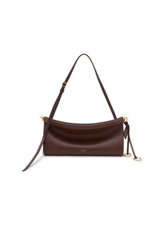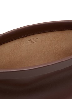 Alaïa 的 Le Click East West 手袋采用质感皮革制成,其弧形轮廓、皮革包裹的铰链开口和建筑风格的底部褶皱唤起了雕塑般的优雅。饰有金属环系细节和可调节肩带,可轻松单肩或斜挎。
