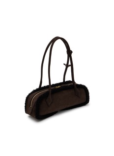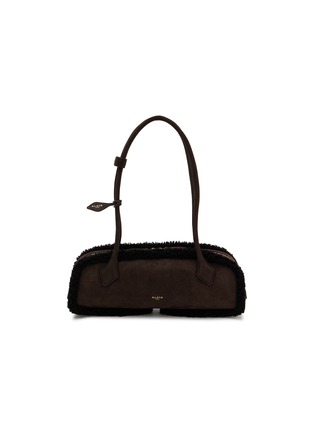 Alaïa reimagines the classic shoulder bag with a padded, pillowy design. The supple suede creates a sophisticated finish with a shearling trim detail, whilst the curved handles add dramatic height. Gold-tone hardware and precise topstitching reflect the house's attention to detail.