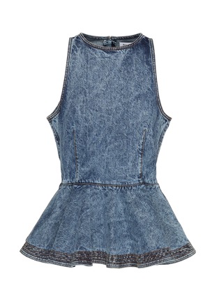 Alaïa 这款无袖上衣,用荷叶边下摆打破牛仔单品的硬朗感,水洗蓝面料自带复古氛围,收腰剪裁平衡随性与精致,既能搭配同风格牛仔打造成套造型,也能混搭柔美裙装解锁轻熟风,是自带品牌质感的百搭单品。