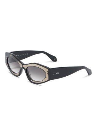 Alaïa 来自摩洛哥,作品常以优雅、性感和力量感为着点,用精湛的工艺打造出雕塑性魅力。这款太阳眼镜以经典猫眼轮廓带来宁静却锐利的力量,为你的穿搭增添利落摩登之感。