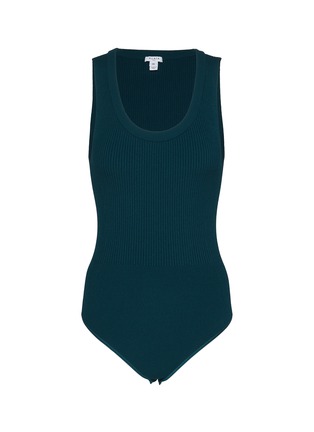 Alaïa 这款针织连体背心,用罗纹面料强化贴身舒适感,墨绿调自带低调高级感,无袖圆领和连体设计兼顾利落与贴合,既能作内搭提升造型精致度,也能单穿打造轻熟休闲风,是自带品牌质感的百搭单品。