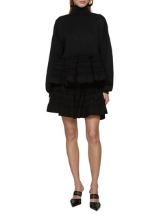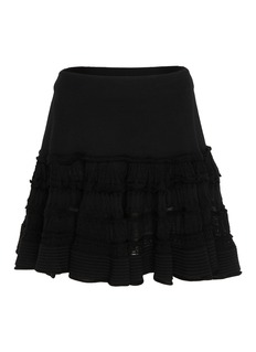 Alaïa brings its sculptural knit heritage to this ruffled mini skirt, shaped from wool-blend crinoline for a voluminous, tiered silhouette. The low waist and delicate decorative trims introduce a playful contrast to the structured form, creating a piece that moves with rhythmic, couture-like flair.