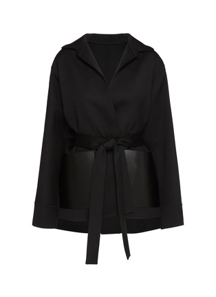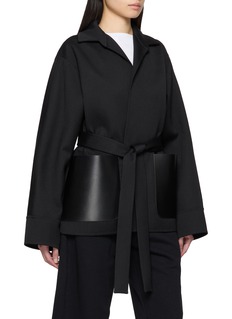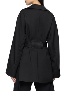 Alaïa 注重几何形状和线条的处理,以巧妙的轮廓剪裁来勾勒身体的曲线。这款夹克以利落剪裁勾勒围裹廓形,腰带细节修饰身形线条,呈现优雅大方的穿搭风格。