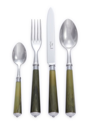 Alain Saint Joanis, masters of fine cutlery, presents this elegant cutlery set. Including a table knife, fork, spoon, and tea spoon, each piece is crafted to perfection from a wooden handle and stainless steel. Ideal for adding a touch of French sophistication to your dining table.