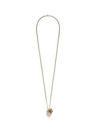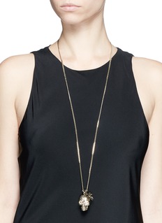 在设计师的创意演绎下,亚历山大麦昆标志性的骷髅头每季都带给人新的惊喜。新季配饰系列加入蝴蝶元素,这款项链布满施华洛世奇仿水晶的骷髅头与蝴蝶形成对比,高贵神秘,为造型带来别致焦点。