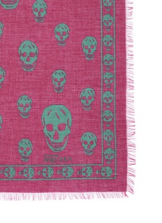 亚历山大麦昆经典骷髅头围巾是时尚女士的最佳配饰,桃红色与绿色的搭配鲜艳抢眼,加上标志性的骷髅头图案,令您轻松成为街头亮点,搭配衬衫或薄外套同样合适。