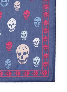 亚历山大麦昆在优雅与暗黑风格之间寻找平衡,这款围巾选用内敛深邃的深蓝色真丝雪纺面料,上面印有品牌经典的彩色骷髅头图案,颇具视觉冲击,令您的造型典雅中不乏叛逆个性。