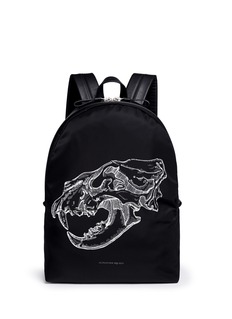 亚历山大麦昆这款双肩包为品牌经典的骷髅头元素注入新鲜感,背包正面印有白色老虎骷髅,结合黑色背景,别具野性酷感。骷髅头拉链增添精致细节,充足容量满足您的日常需求,是实用性与个性魅力兼备的单品。