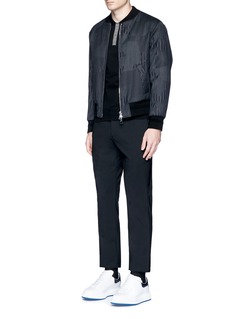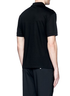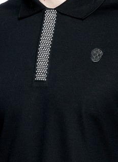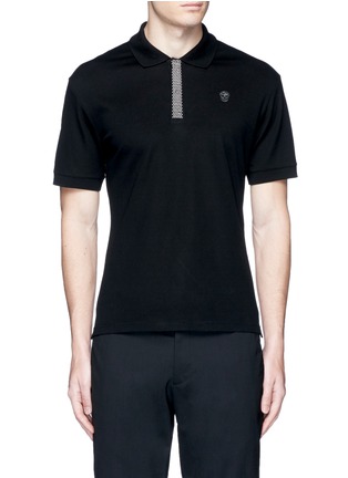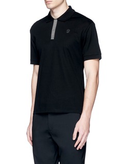 细节装点是为基本单品画龙点睛的时尚技巧,亚历山大麦昆这款polo衫左胸拼贴黑色骷髅刺绣徽章,于半开襟处饰以细密的银色金属钉饰,为纯黑色调增添亮点,彰显摩登独特的时尚魅力。