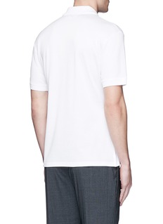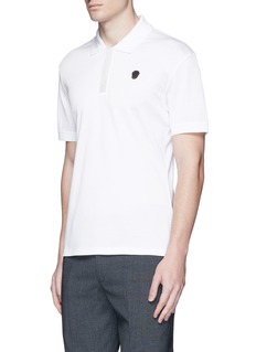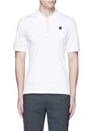 细节装点是为基本单品画龙点睛的时尚技巧,亚历山大麦昆这款polo衫左胸拼贴黑色骷髅刺绣徽章,于半开襟处饰以细密的银色金属钉饰,为纯白色调增添亮点,彰显摩登独特的时尚魅力。