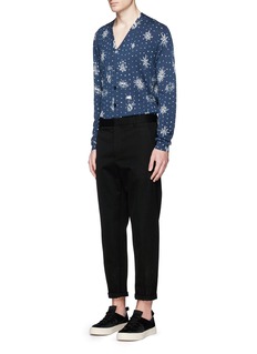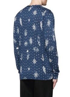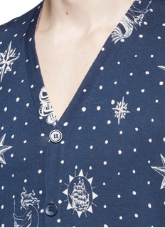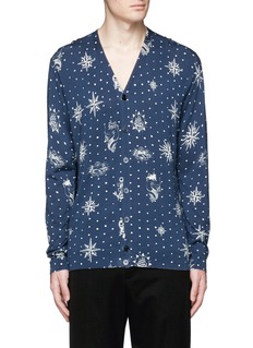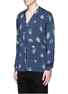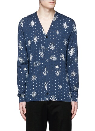 亚历山大麦昆这款针织衫深蓝色主调上有美人鱼、帆船、蛇等图案,配以周身白色波点,为简约斯文的设计注入摩登复古气息。棉混丝面料柔滑凉爽,是春夏季节男士们时尚又实用的选择。