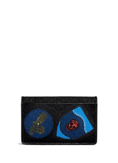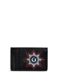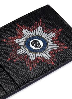 亚历山大麦昆为标志性的骷髅头注入新鲜感。黑色荔枝纹小牛皮上缀有多彩军事风骷髅头徽章图案,暗黑之中散发玩味感觉,是配衬摩登前卫造型的理想配饰。